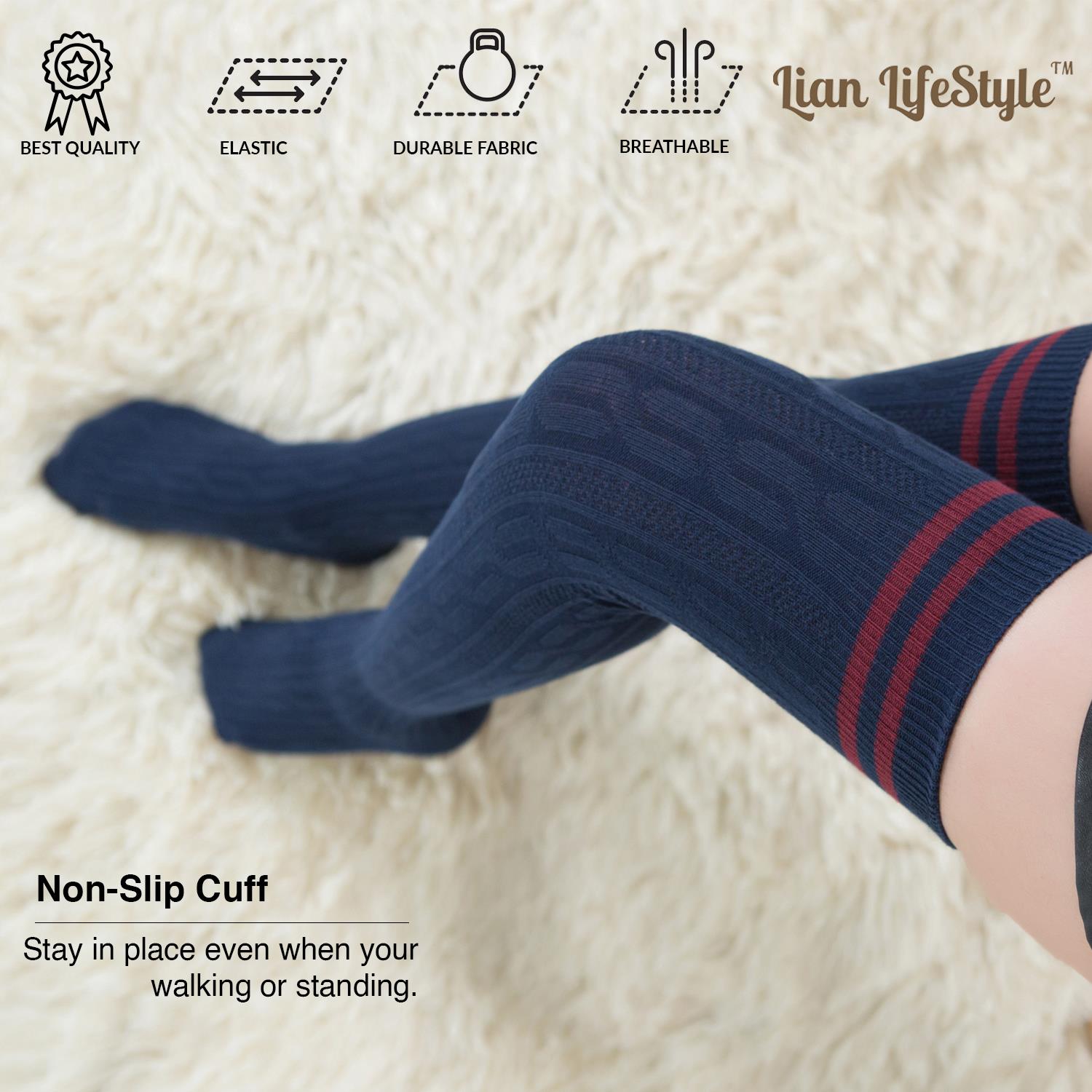 Lian LifeStyle Women's 3 Pairs Adorable Comfortable Soft Thigh High Over Knee High Cotton Socks Size 6-9 L1023(Navy)