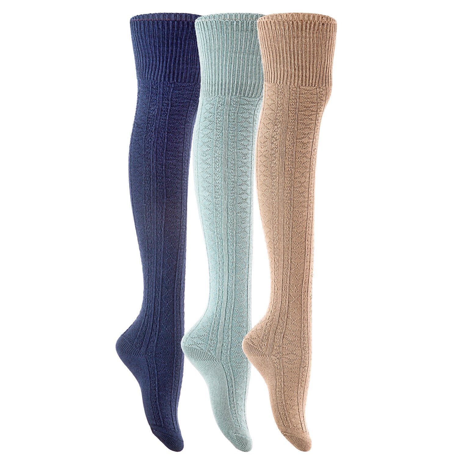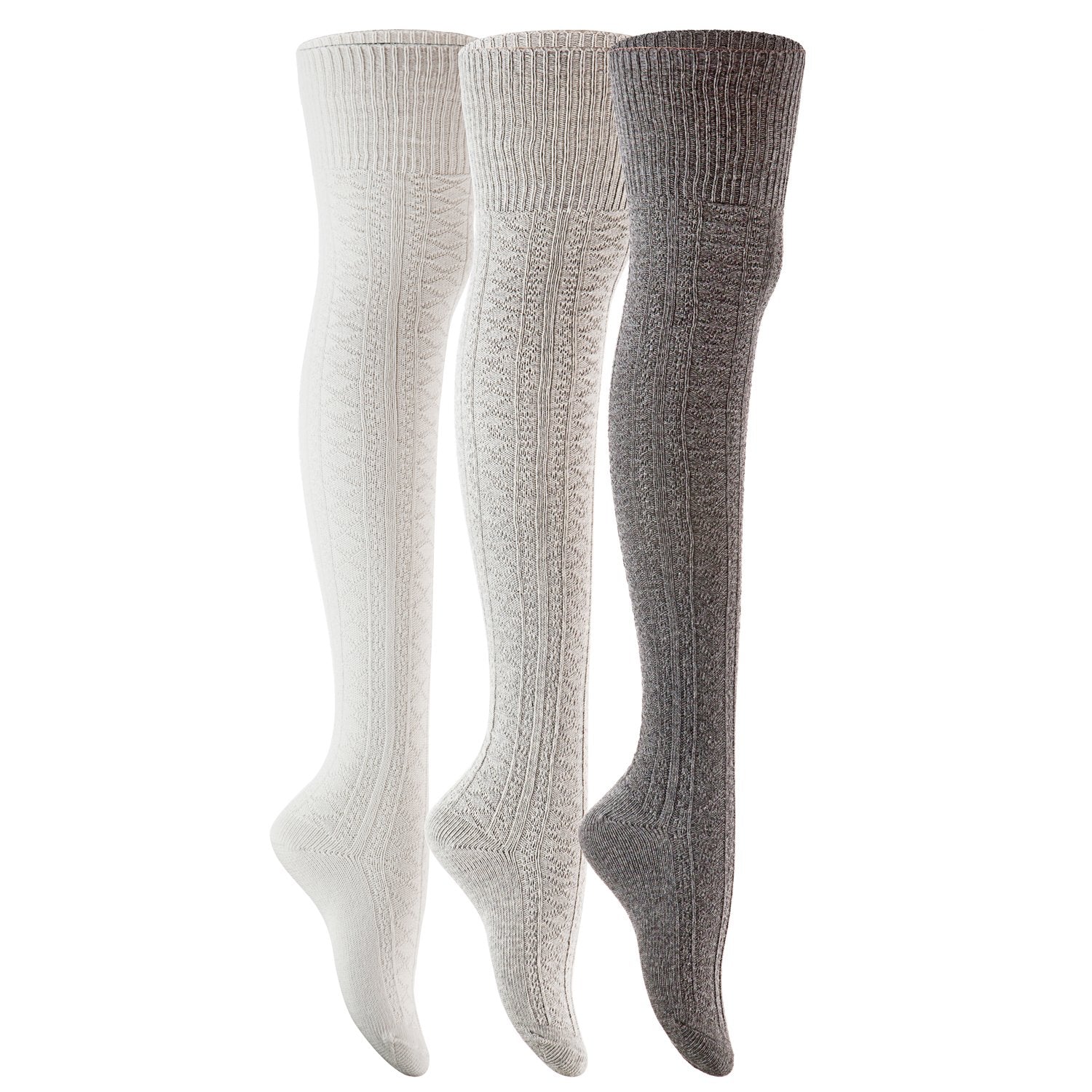 Lian LifeStyle Women's 3 Pairs Adorable Thigh High Cotton Socks J1025 Size 6-9
