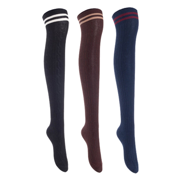 Lian Lifestyle Women's 3 Pairs Incredible Durable Super Soft Unique Over Knee High Thigh High Cotton Socks, Size US 6-9, JMYP1023 (Black,Coffee,Navy)