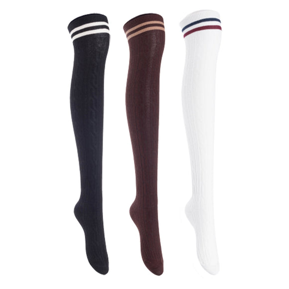 Lian Lifestyle Women's 3 Pairs Incredible Durable Super Soft Unique Over Knee High Thigh High Cotton Socks, Size US 6-9, JMYP1023 (Black,Coffee,White)