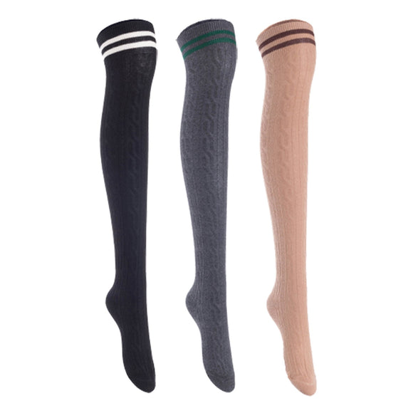 Lian Lifestyle Women's 3 Pairs Incredible Durable Super Soft Unique Over Knee High Thigh High Cotton Socks, Size US 6-9, JMYP1023 (Black,Dark Grey,Khaki)