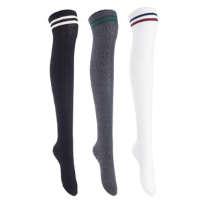 Lian Lifestyle Women's 3 Pairs Incredible Durable Super Soft Unique Over Knee High Thigh High Cotton Socks, Size US 6-9, JMYP1023 (Black,Dark Grey,White)