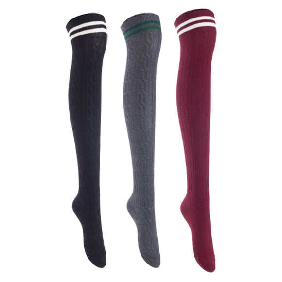Lian Lifestyle Women's 3 Pairs Incredible Durable Super Soft Unique Over Knee High Thigh High Cotton Socks, Size US 6-9, JMYP1023 (Black,Dark Grey,Wine)