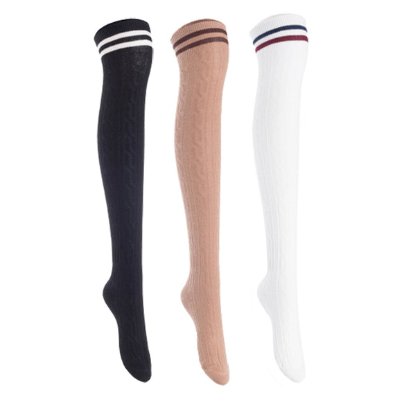 Lian Lifestyle Women's 3 Pairs Incredible Durable Super Soft Unique Over Knee High Thigh High Cotton Socks, Size US 6-9, JMYP1023 (Black,Khaki,White)
