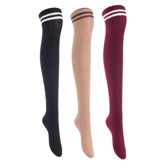 Lian Lifestyle Women's 3 Pairs Incredible Durable Super Soft Unique Over Knee High Thigh High Cotton Socks, Size US 6-9, JMYP1023 (Black,Khaki,Wine)