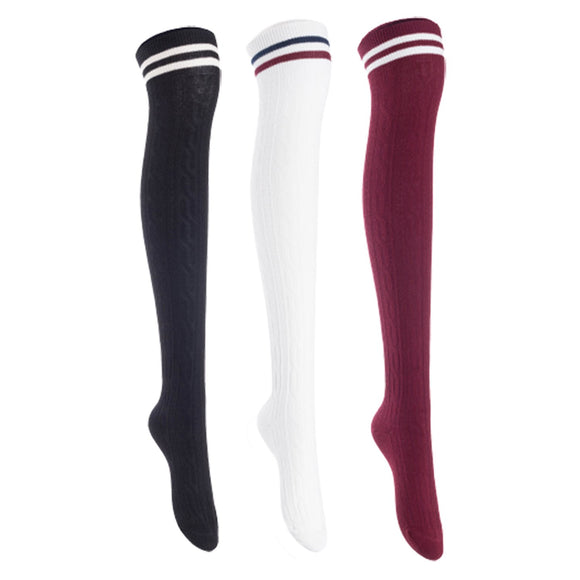 Lian Lifestyle Women's 3 Pairs Incredible Durable Super Soft Unique Over Knee High Thigh High Cotton Socks, Size US 6-9, JMYP1023 (Black,White,Wine)