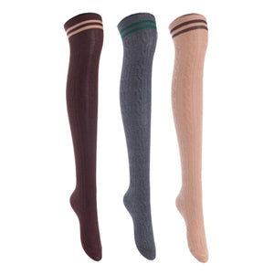 Lian Lifestyle Women's 3 Pairs Incredible Durable Super Soft Unique Over Knee High Thigh High Cotton Socks, Size US 6-9, JMYP1023 (Coffee,Dark Grey,Khaki)
