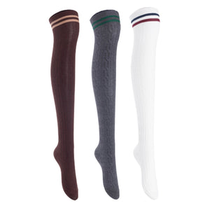 Lian Lifestyle Women's 3 Pairs Incredible Durable Super Soft Unique Over Knee High Thigh High Cotton Socks, Size US 6-9, JMYP1023 (Coffee,Dark Grey,White)