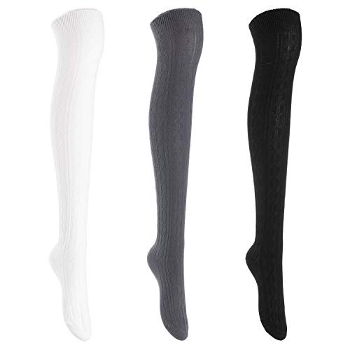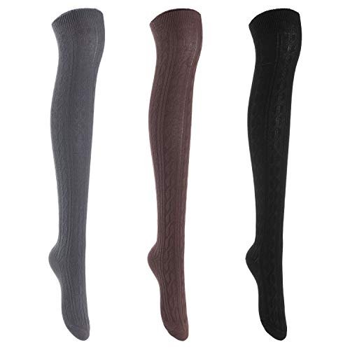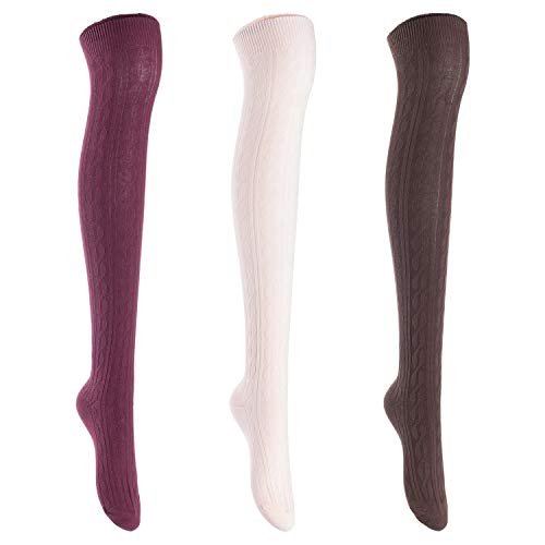 Lian LifeStyle Women's 3 Pairs Knee High Thigh High Cotton Socks Size 6-9 L1024