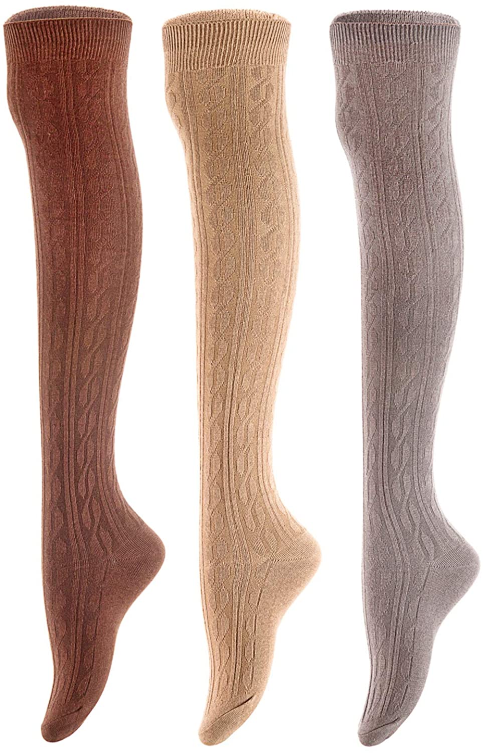 Lian LifeStyle Women's 3 Pairs Knee High Thigh High Cotton Socks Size 6-9 L1024
