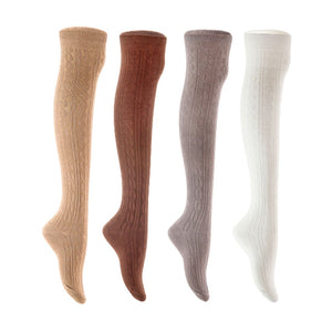 Lian LifeStyle Women's 4 Pair Adorable Comfortable Soft Thigh High Over Knee High Cotton Socks Size 6-9 L1024 (Beige,Coffee,Dark Grey,White)