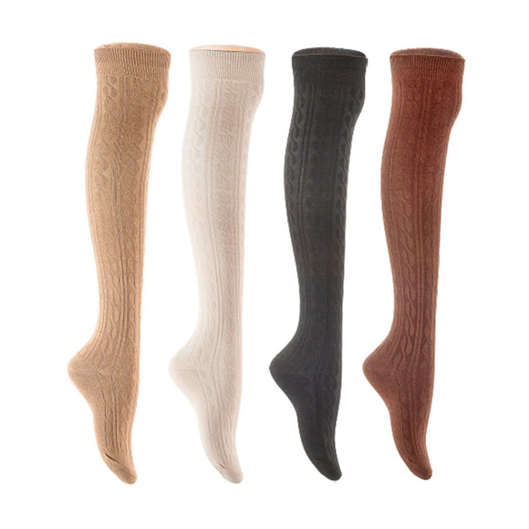 Lian LifeStyle Women's 4 Pair Adorable Comfortable Soft Thigh High Over Knee High Cotton Socks Size 6-9 L1024 (Beige,Cream,Black,Coffee)