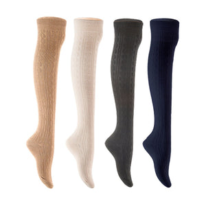 Lian LifeStyle Women's 4 Pair Adorable Comfortable Soft Thigh High Over Knee High Cotton Socks Size 6-9 L1024 (Beige,Cream,Black,Navy)