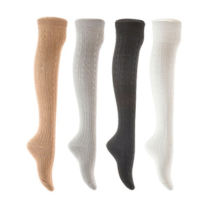 Lian LifeStyle Women's 4 Pair Adorable Comfortable Soft Thigh High Over Knee High Cotton Socks Size 6-9 L1024 (Beige,Light Grey,Black,White)