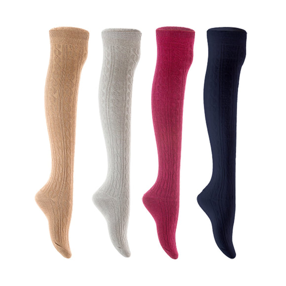 Lian LifeStyle Women's 4 Pair Adorable Comfortable Soft Thigh High Over Knee High Cotton Socks Size 6-9 L1024 (Beige,Light Grey,Wine,Navy)
