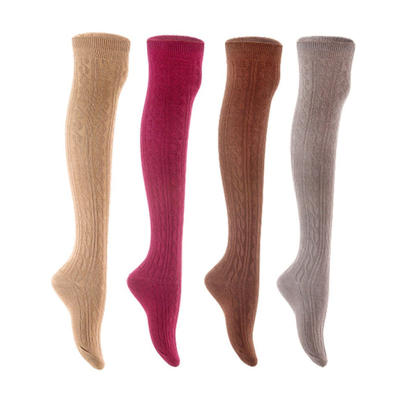Lian LifeStyle Women's 4 Pair Adorable Comfortable Soft Thigh High Over Knee High Cotton Socks Size 6-9 L1024 (Beige,Wine,Coffee,Dark Grey)