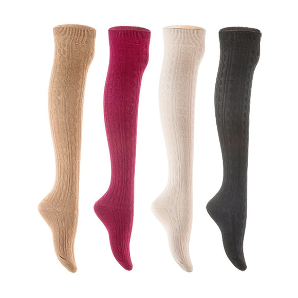 Lian LifeStyle Women's 4 Pair Adorable Comfortable Soft Thigh High Over Knee High Cotton Socks Size 6-9 L1024 (Beige,Wine,Cream,Black)