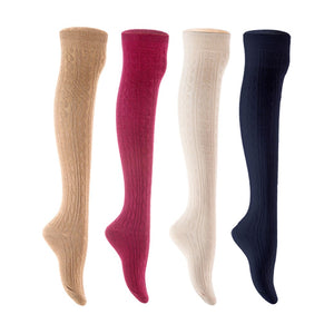Lian LifeStyle Women's 4 Pair Adorable Comfortable Soft Thigh High Over Knee High Cotton Socks Size 6-9 L1024 (Beige,Wine,Cream,Navy)