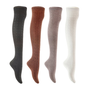 Lian LifeStyle Women's 4 Pair Adorable Comfortable Soft Thigh High Over Knee High Cotton Socks Size 6-9 L1024 (Black,Coffee,Dark Grey,White)