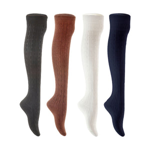 Lian LifeStyle Women's 4 Pair Adorable Comfortable Soft Thigh High Over Knee High Cotton Socks Size 6-9 L1024 (Black,Coffee,White,Navy)