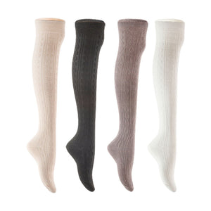 Lian LifeStyle Women's 4 Pair Adorable Comfortable Soft Thigh High Over Knee High Cotton Socks Size 6-9 L1024 (Cream,Black,Dark Grey,White)