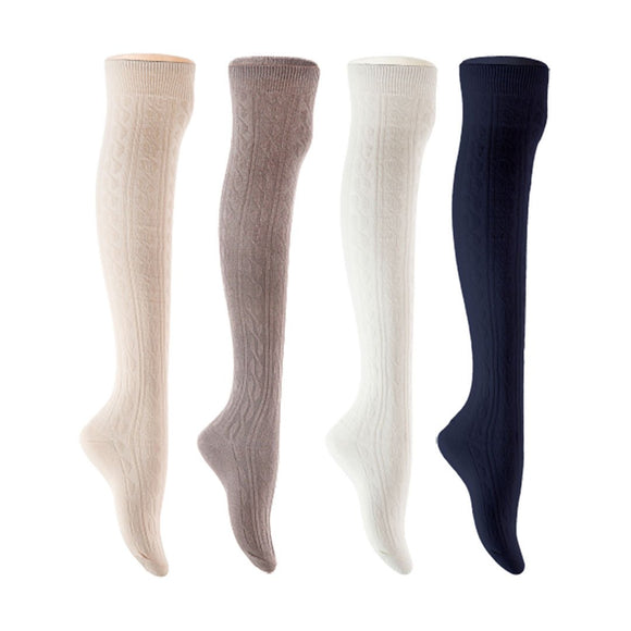 Lian LifeStyle Women's 4 Pair Adorable Comfortable Soft Thigh High Over Knee High Cotton Socks Size 6-9 L1024 (Cream,Dark Grey,White,Navy)