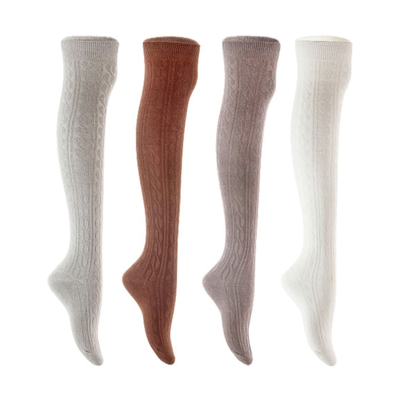 Lian LifeStyle Women's 4 Pair Adorable Comfortable Soft Thigh High Over Knee High Cotton Socks Size 6-9 L1024 (Light Grey,Coffee,Dark Grey,White)