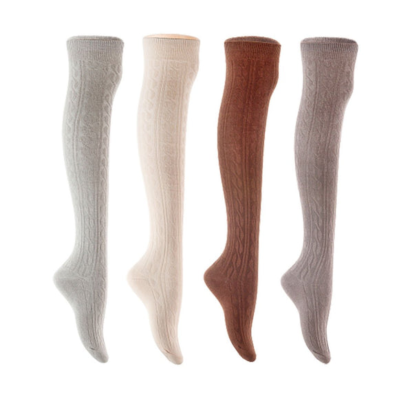 Lian LifeStyle Women's 4 Pair Adorable Comfortable Soft Thigh High Over Knee High Cotton Socks Size 6-9 L1024 (Light Grey,Cream,Coffee,Dark Grey)