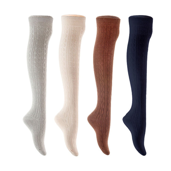 Lian LifeStyle Women's 4 Pair Adorable Comfortable Soft Thigh High Over Knee High Cotton Socks Size 6-9 L1024 (Light Grey,Cream,Coffee,Navy)