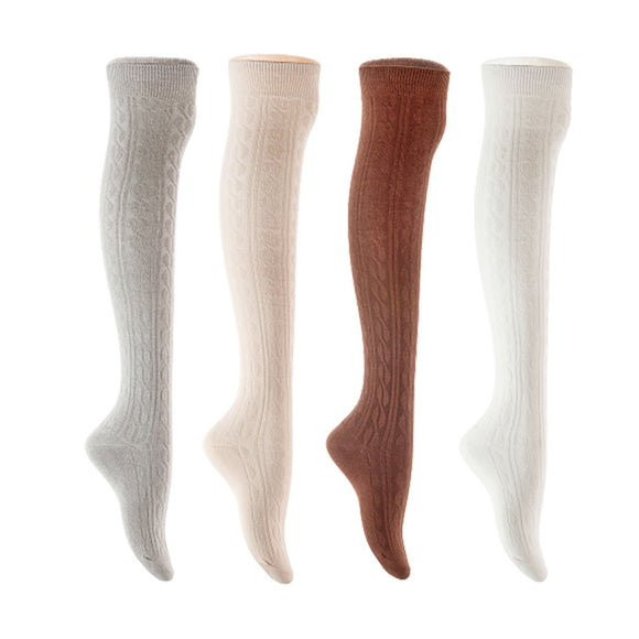Lian LifeStyle Women's 4 Pair Adorable Comfortable Soft Thigh High Over Knee High Cotton Socks Size 6-9 L1024 (Light Grey,Cream,Coffee,White)