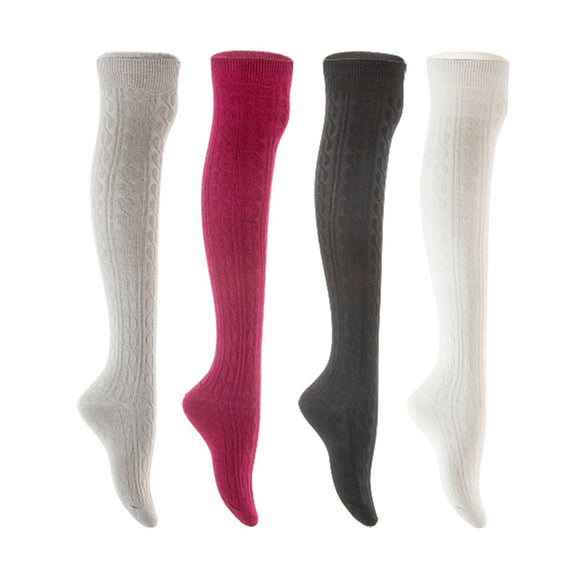 Lian LifeStyle Women's 4 Pair Adorable Comfortable Soft Thigh High Over Knee High Cotton Socks Size 6-9 L1024 (Light Grey,Wine,Black,White)