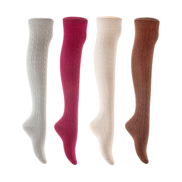 Lian LifeStyle Women's 4 Pair Adorable Comfortable Soft Thigh High Over Knee High Cotton Socks Size 6-9 L1024 (Light Grey,Wine,Cream,Coffee)
