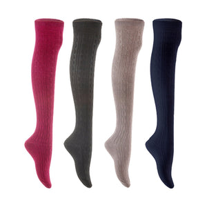 Lian LifeStyle Women's 4 Pair Adorable Comfortable Soft Thigh High Over Knee High Cotton Socks Size 6-9 L1024 (Wine,Black,Dark Grey,Navy)