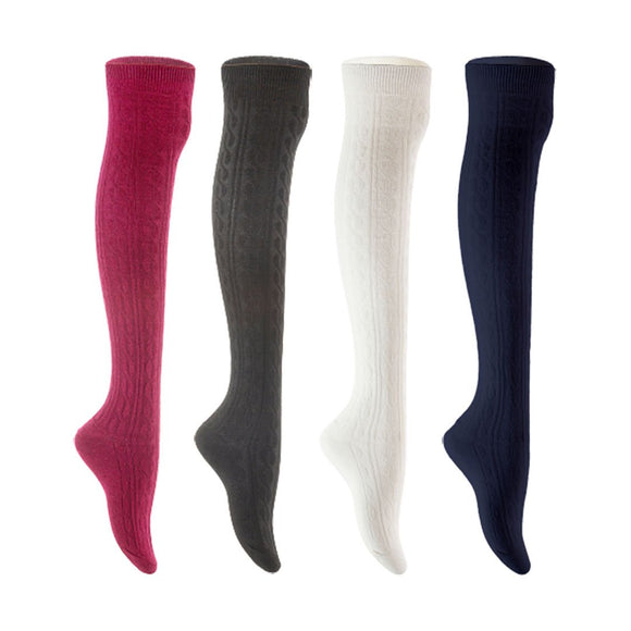 Lian LifeStyle Women's 4 Pair Adorable Comfortable Soft Thigh High Over Knee High Cotton Socks Size 6-9 L1024 (Wine,Black,White,Navy)