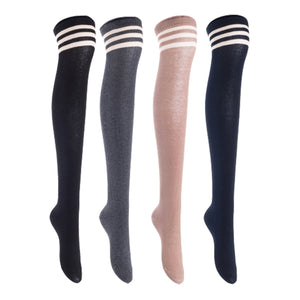 Lian LifeStyle Women's 4 Pairs Adorable Comfortable Soft Thigh High Over Knee High Cotton Socks, Size 6-9, JMYP1022 (Black, DarkGrey, Khaki, Navy)