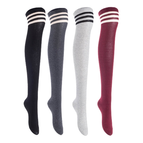 Lian LifeStyle Women's 4 Pairs Adorable Comfortable Soft Thigh High Over Knee High Cotton Socks, Size 6-9, JMYP1022 (Black, DarkGrey, LightGrey, Wine)