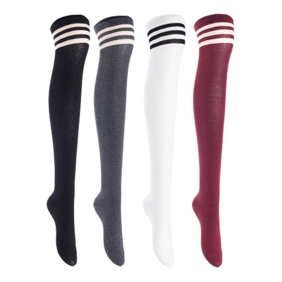 Lian LifeStyle Women's 4 Pairs Adorable Comfortable Soft Thigh High Over Knee High Cotton Socks, Size 6-9, JMYP1022 (Black, DarkGrey, White, Wine)
