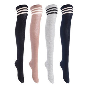 Lian LifeStyle Women's 4 Pairs Adorable Comfortable Soft Thigh High Over Knee High Cotton Socks, Size 6-9, JMYP1022 (Black, Khaki, LightGrey, Navy)
