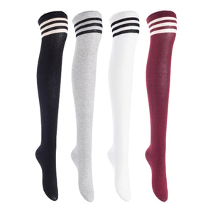 Lian LifeStyle Women's 4 Pairs Adorable Comfortable Soft Thigh High Over Knee High Cotton Socks, Size 6-9, JMYP1022 (Black, LightGrey, White, Wine)