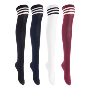 Lian LifeStyle Women's 4 Pairs Adorable Comfortable Soft Thigh High Over Knee High Cotton Socks, Size 6-9, JMYP1022 (Black, Navy, White, Wine)