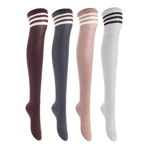 Lian LifeStyle Women's 4 Pairs Adorable Comfortable Soft Thigh High Over Knee High Cotton Socks, Size 6-9, JMYP1022 (Coffee, DarkGrey, Khaki, LightGrey)