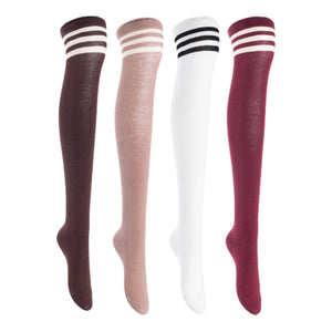 Lian LifeStyle Women's 4 Pairs Adorable Comfortable Soft Thigh High Over Knee High Cotton Socks, Size 6-9, JMYP1022 (Coffee, Khaki, White, Wine)