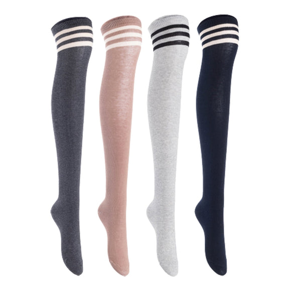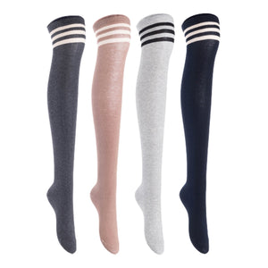 Lian LifeStyle Women's 4 Pairs Adorable Comfortable Soft Thigh High Over Knee High Cotton Socks, Size 6-9, JMYP1022 (DarkGrey, Khaki, LightGrey, Navy)