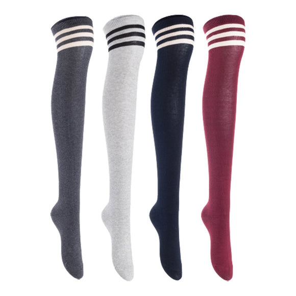 Lian LifeStyle Women's 4 Pairs Adorable Comfortable Soft Thigh High Over Knee High Cotton Socks, Size 6-9, JMYP1022 (DarkGrey, LightGrey, Navy, Wine)