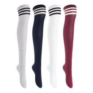 Lian LifeStyle Women's 4 Pairs Adorable Comfortable Soft Thigh High Over Knee High Cotton Socks, Size 6-9, JMYP1022 (LightGrey, Navy, White, Wine)