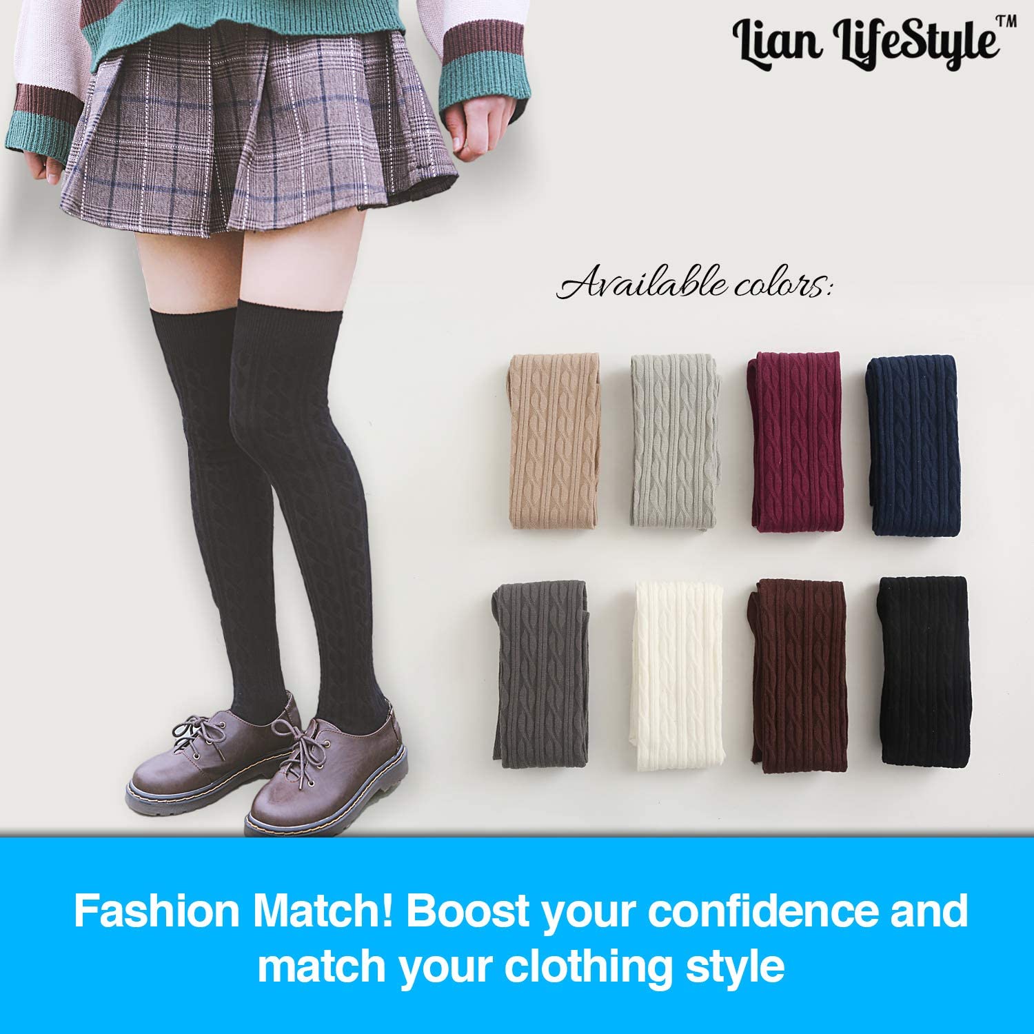 Lian LifeStyle Women's 4 Pairs Adorable Comfortable Soft Thigh High Over Knee High Cotton Socks Size 6-9 L1024 (Coffee, Grey, Khaki, White)