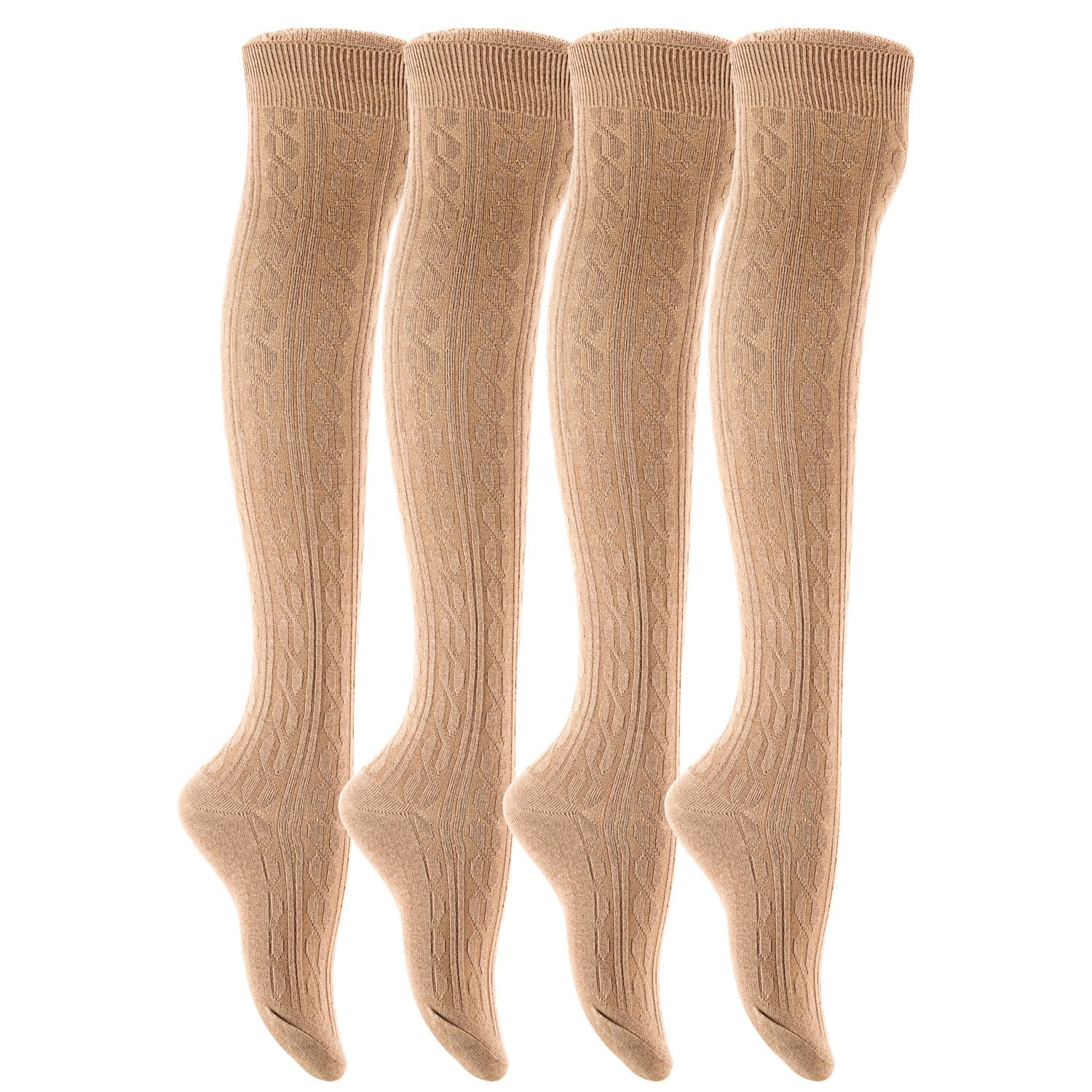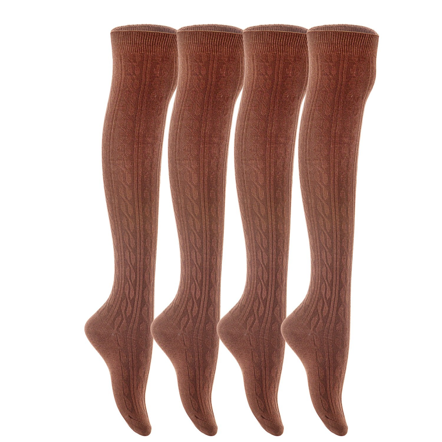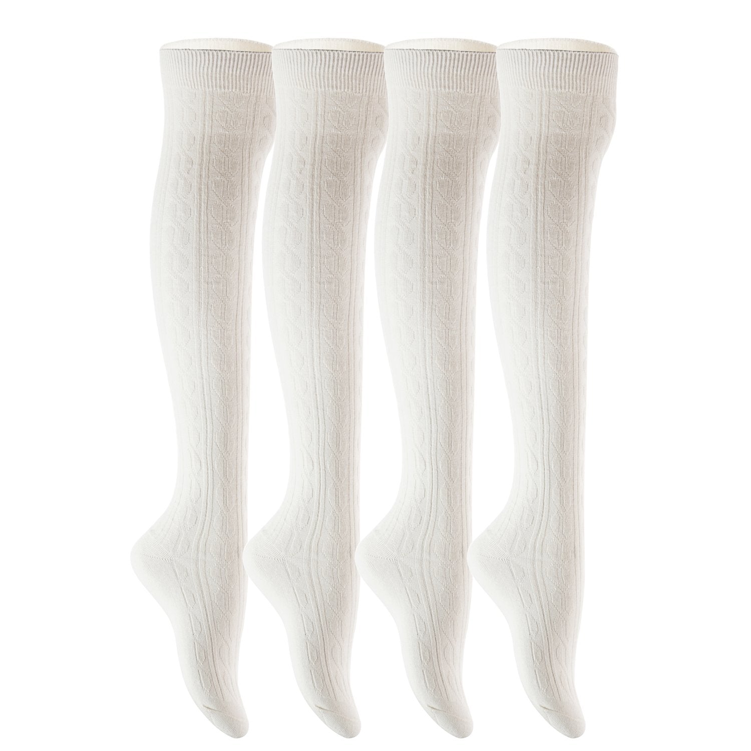 Lian LifeStyle Women's 4 Pairs Adorable Thigh High Cotton Socks LW1024 Size 6-9