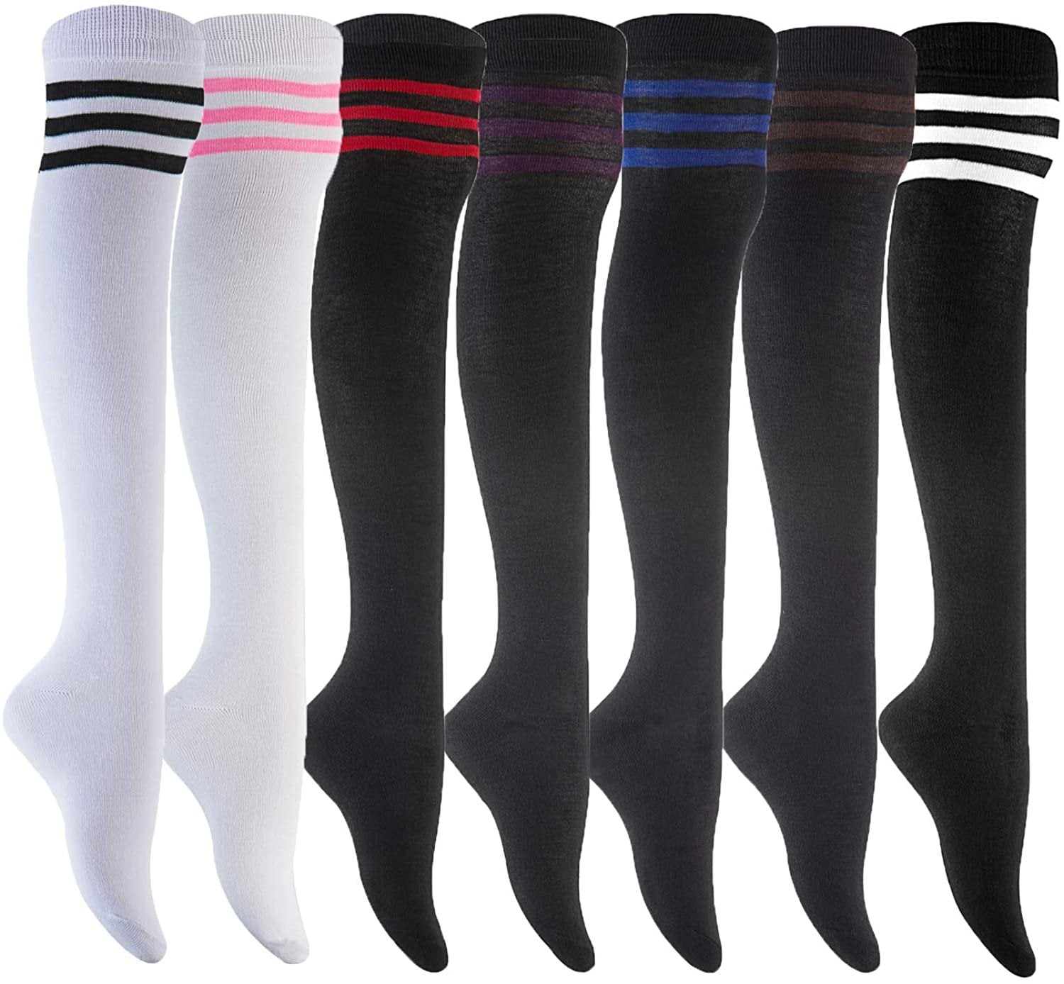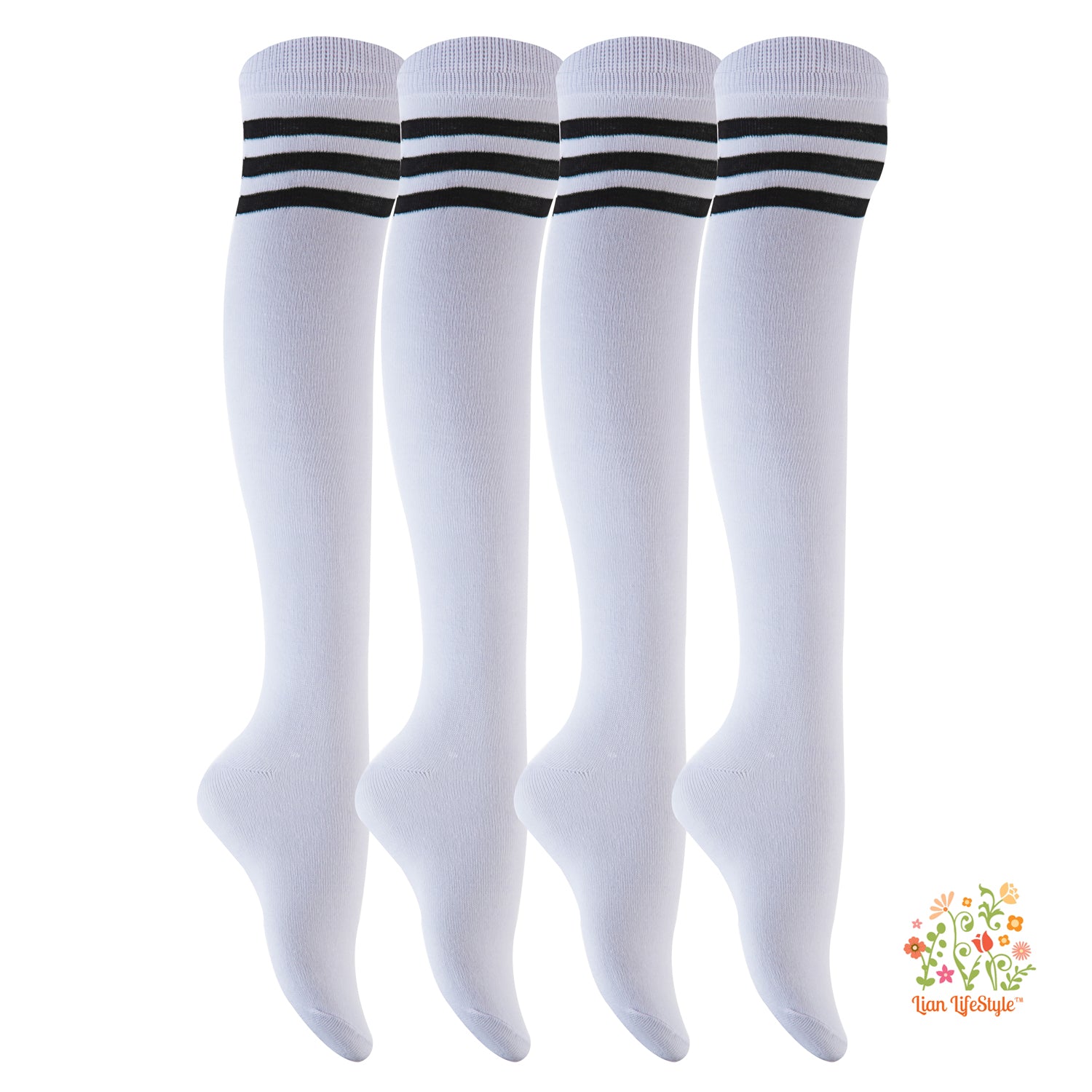 Lian LifeStyle Women's 4 Pairs Adorable Thigh High Cotton Socks RX Size 6-9