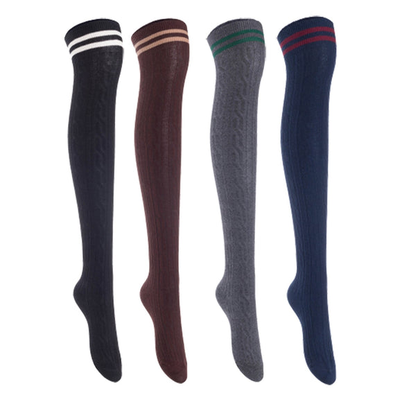 Lian Lifestyle Women's 4 Pairs Incredible Durable Super Soft Unique Over Knee High Thigh High Cotton Socks, Size US 6-9, JMYP1023 (Black, Coffee, Dark Gray, Navy)