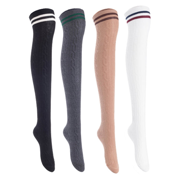 Lian Lifestyle Women's 4 Pairs Incredible Durable Super Soft Unique Over Knee High Thigh High Cotton Socks, Size US 6-9, JMYP1023 (Black, Dark Gray, Khaki, White)
